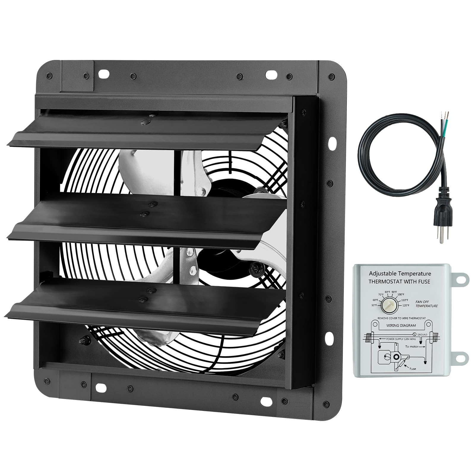 8 Inch Shutter Exhaust Fan, 760 CFM High-Speed Cooling Ventilation Attic Fan, 40dB Quiet Wall Mounted Exhaust Fan for Garage, Greenhouse, Basement, Chicken Coop, Black